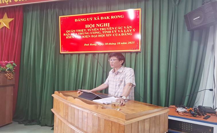 Hội nghị quán triệt, tuyên truyền các văn bản của cấp trên gồm: Nghị quyết 57-NQ/TW ngày 22/12/2024 của Bộ Chính trị về đột phá phát triển khoa học, công nghệ, đổi mới sáng tạo và chuyển đổi số quốc gia xác định tầm nhìn đến năm 2045; Nghị quyết số 70-NQ/TW ngày 20/8/2025 của Bộ Chính trị về bảo đảm an ninh năng lượng quốc gia đến năm 2030, tầm nhìn đến năm 2045; Nghị quyết số 71-NQ/TW, ngày 22/8/2025 của Bộ Chính trị về đột phá phát triển giáo dục và đào tạo; Nghị quyết số 72-NQ/TW ngày 09/9/2025 của Bộ Chính trị về một số giải pháp đột phá, tăng cường bảo vệ, chăm sóc và nâng cao sức khỏe Nhân dân; Kết luận số 153-KL/TW, ngày 16/5/2025 của Bộ Chính trị về phương hướng bầu cử đại biểu Quốc hội khoá XVI và đại biểu Hội đồng nhân dân các cấp nhiệm kỳ 2026 – 2031; Chỉ thị số 05-CT/TU ngày 12/9/2025 của Ban Thường vụ Tỉnh ủy về lãnh đạo thực hiện công tác bầu cử đại biểu Quốc hội khóa XVI và bầu cử đại biểu Hội đồng nhân dân các cấp nhiệm kỳ 2026 - 2031; Hướng dẫn số 36-HD/BTCTW ngày 09/9/2025 của Ban Tổ chức Trung ương về công tác nhân sự đại biểu Quốc hội khóa XVI và đại biểu Hội đồng nhân dân các cấp nhiệm kỳ 2026 – 2031.
