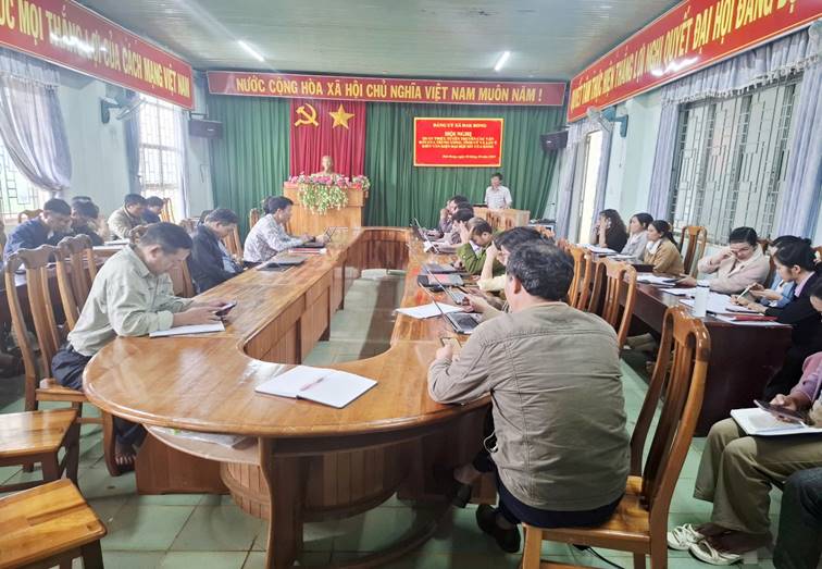 Báo cáo viên Hội nghị có các đồng chí Huỳnh Văn Nam – Bí thư Đảng uỷ, Chủ tịch HĐND xã; đồng chí Đinh Nao – Phó Bí thư Thường trực Đảng uỷ xã; đồng chí Mã Văn Tình – PBT Đảng uỷ, Chủ tịch UBND xã; đồng chí Vũ Văn Tuấn – Uỷ viên BTV, Trưởng Ban Xây dựng Đảng.